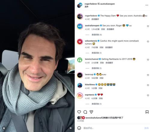 北京時間12月12日,費德勒在社媒發文,宣布將在2026澳網重返墨爾本。