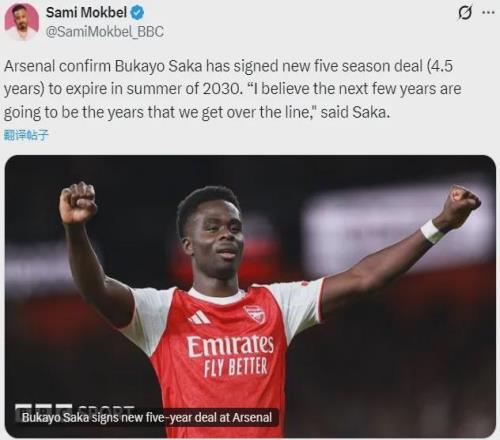 根據(jù)BBC記者SM的說法,薩卡的新合同其實(shí)是2030年夏天到期(4.5年)。