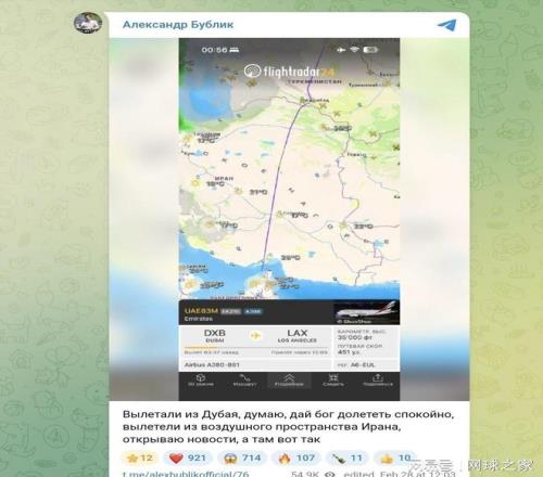 他沒有夸張。就在他的航班剛剛離開伊朗空域不久,美國與以色列對伊朗境內(nèi)目標(biāo)發(fā)動了打擊,而伊朗迅速向包括阿聯(lián)酋在內(nèi)的多個海灣國家發(fā)射了導(dǎo)彈作為報復(fù)。事后公布的飛行追蹤圖像顯示,布勃利克的航班幾乎是"掐著點"離開了危險區(qū)域——如果晚半小時,他很可能會被迫返航,甚至在空中經(jīng)歷更驚魂的時刻。