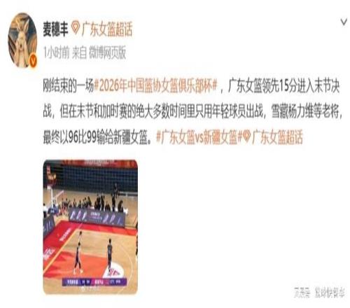 WCBA俱樂部決賽階段小組賽正式打響,女籃聯賽新霸主廣東隊迎戰新疆隊。盡管廣東隊缺少了楊舒予、陳明伶等主力球員,不過,在這一場比賽,廣東隊大部分時間里還是能夠壓制住對手。可在末節比賽,廣東隊卻突然斷電,在一度手握15分領先優勢的情況下,竟然被新疆隊神奇逆轉。雖然廣東隊最后時刻命中超遠三分扳平比分。可在隨后的加時賽,廣東隊還是未能頂住壓力,最終以96-99不敵新疆隊,遭遇首敗。