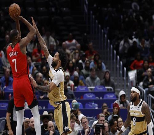 火箭客場力克奇才,今天杜蘭特進攻效率極高,奇才全隊無人能防住。上半場他投籃5中3(三分2中2),罰球6中6砍下14分1籃板1助攻2蓋帽。