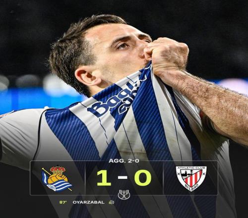 反觀皇家社會,1球領先打得很有耐心,第87分鐘,奧亞薩瓦爾在禁區內制造點球機會,并親自主罰命中,皇家社會1-0領先,總比分2-0,最終比分也定格在此,皇家社會完成雙殺,強勢挺進決賽。