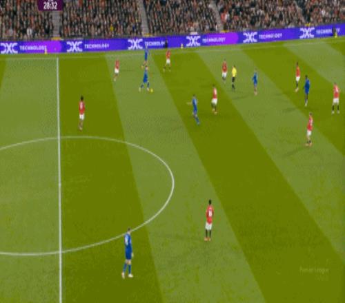 因為下半場多打一人的曼聯,確實不必費心于推進了,甭管謝什科在推進環節中有沒有作用,他確實可以在禁區內坐等攻門了。