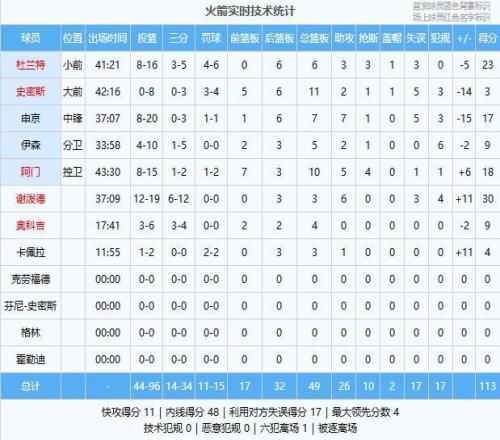 謝潑德30分3板6助、杜蘭特23分6板3助3斷、阿門18分10板5助4斷、申京17分7板7助、伊森9分5板2助、奧科吉9分4板、卡佩拉4分3板1助、史密斯3分11板2助