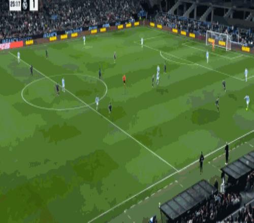 比賽剛剛開打第1分鐘,主場作戰(zhàn)的塞爾塔就給了銀河戰(zhàn)艦一個下馬威,博爾哈殺入禁區(qū)后,完成了一腳勢大力沉的打門,可惜沒有壓住,皮球直接打上看臺,第12分鐘皇馬率先打破場上平衡,戰(zhàn)術(shù)角球開出后,居萊爾在底線倒三角傳中,助攻瓊阿梅尼推桿破門,取得了1-0的領(lǐng)先,后者也打破了近一年的聯(lián)賽進(jìn)球荒。