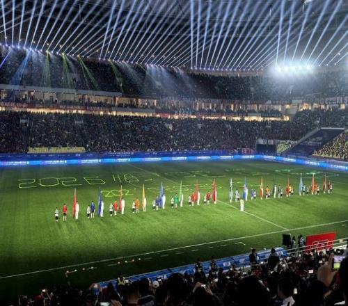 今晚的開幕式沒有繁文縟節,文藝表演如同蜀錦般在草坪上織出流動的詩篇。隨后,中超各隊隊旗入場,每一次揮動仿佛都在訴說,從甲A到中超的風雨兼程。在全場目光的聚焦下,象征著中國職業足球至高榮耀的火神杯完成了交接。那樽沉甸甸的獎杯,在燈光的映照下,反射出的是冠軍的渴望,也是一代代足球人未竟的夢想。運動員與裁判員的誓言,簡潔而莊重。當賽季主題曲《超越》的旋律在鳳凰山上空響起,“成都雄起”聲也隨之響徹云霄。
