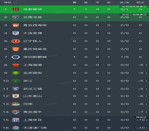 中超最新積分榜
