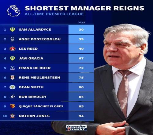 英超歷史最短命主帥: