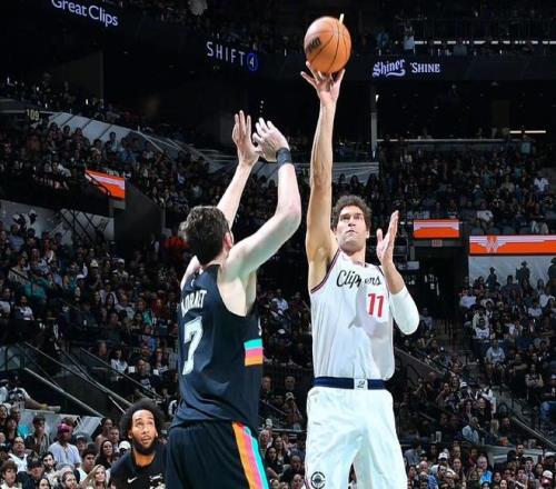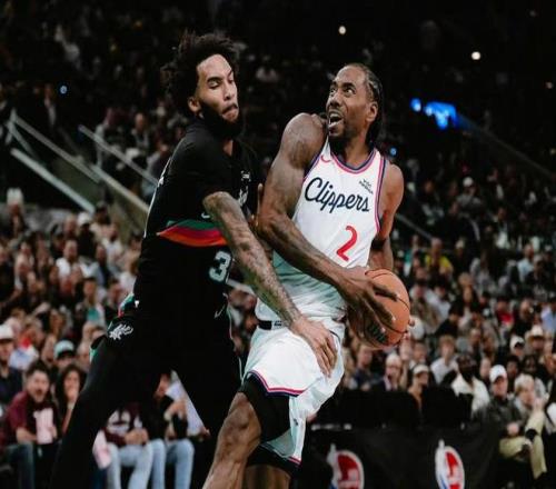 第一節(jié)比賽末段,快船率先占據(jù)主動權(quán),依靠米勒和馬瑟林的輪番沖擊籃下,取得微弱領先優(yōu)勢。首節(jié)比賽結(jié)束,快船32-25領先馬刺隊7分。次節(jié)比賽開始,科內(nèi)特教科書般的老大爺勾手,幫助馬刺隊先下一城,倫納德彎道超車,直搗黃龍?zhí)袈鋬煞郑ㄋ範柸志€外接球就投,一擊命中,倫納德侵略性十足,霸王龍三大步上籃也擦板得分,文班亞馬踏雪無痕搶到進攻籃板,飛身補籃得手,小卡又一個搶斷快攻,反擊一條龍上籃命中,文班自信三分開火一箭穿心,馬刺在第二節(jié)后半段陷入得分荒,快船趁機全民皆兵,繼續(xù)擴大領先優(yōu)勢到兩位數(shù)。