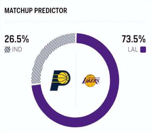 賽前,美媒ESPN對本場比賽進行了勝率預測,湖人隊勝率高達73.5%,步行者勝率則僅有26.5% ,對比非常明顯 。
