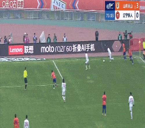 第74分鐘,泰山角球機會,前點全部漏過。澤卡門前面對空門輕松撿漏破門,泰山3-0領先鐵人。