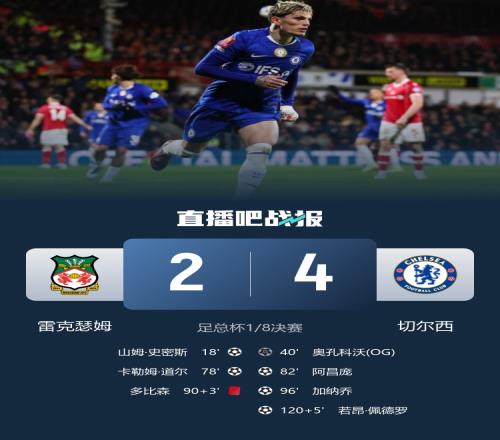 加時(shí)賽結(jié)束,最終切爾西4-2雷克瑟姆。