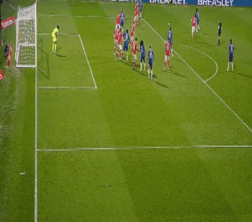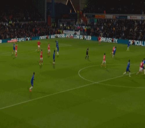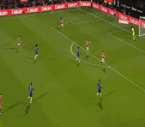 第40分鐘,羅伯特-桑切斯后場直傳,德拉普扛住對方后衛轉身推進,禁區前沿分球左路,加納喬小角度推射,造成奧孔庫沃自擺烏龍,切爾西扳平,1-1!