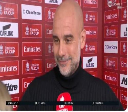 足總杯1/8決賽,曼城將客場對陣紐卡斯爾,曼城主帥瓜迪奧拉賽前接受了TNT體育的采訪。