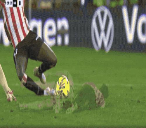 第23分鐘,埃里克·加西亞和博伊羅對腳,兩人都沒有任何退縮,重重撞在一起,兩敗俱傷。