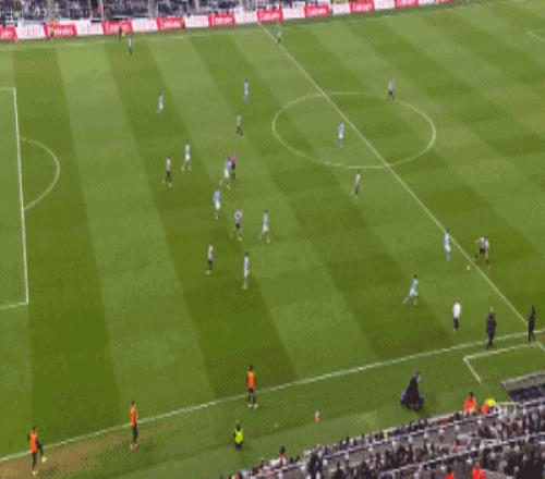 第18分鐘,托納利中路直塞,巴恩斯反越位,左路插上單刀兜射得手,紐卡斯爾打破僵局,1-0!