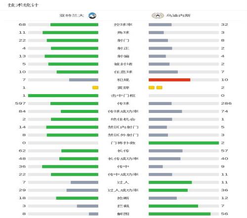 第55分鐘,薩拉加射門被擋,戴維斯補射破門,亞特蘭大0-2烏迪內斯