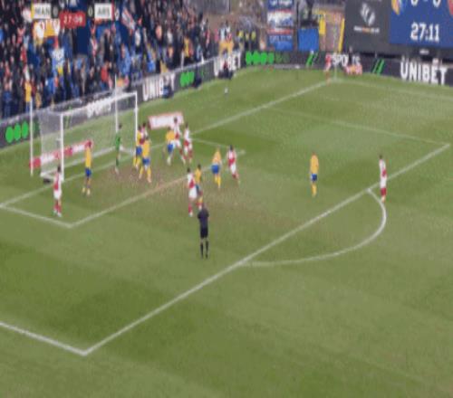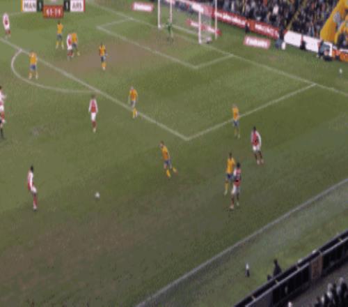第64分鐘,阿森納打出邊中結(jié)合,可惜門前近在咫尺的打門,被曼斯菲爾德球員諾勒門線解圍。