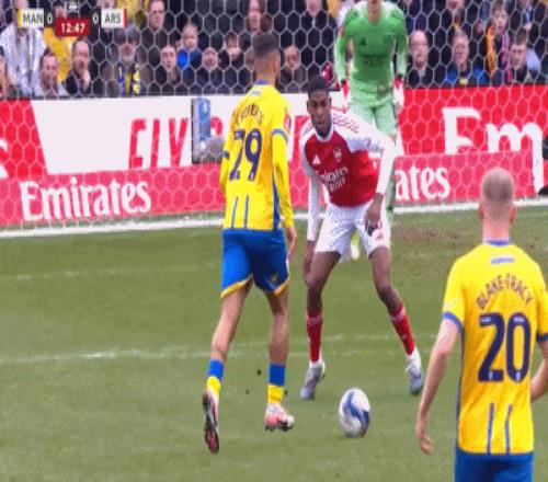 第50分鐘,薩爾蒙回傳失誤,埃文斯斷球后,順勢殺入阿森納禁區(qū),隨后用一腳低射,幫助曼斯菲爾德將比分追至1平。