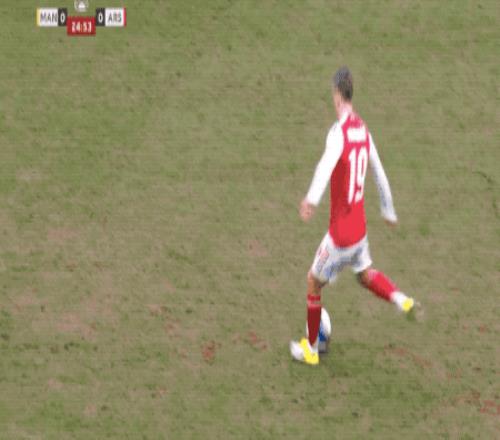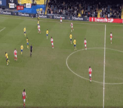 穩(wěn)住陣腳后,阿森納開(kāi)始控制局面,利用嫻熟的傳控球撕扯曼斯菲爾德的防線。第20分鐘,特羅薩德卯足全力的射門(mén),放了高射炮。