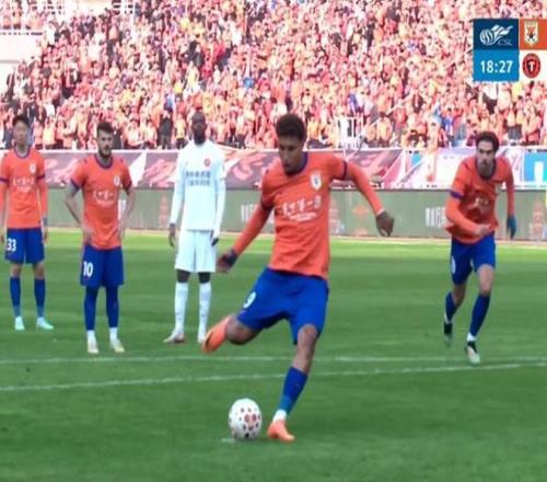 第18分鐘,克雷桑禁區內被絆倒,裁判給了點球,隨后親自主罰命中,山東泰山2-0!