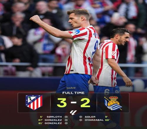 第81分鐘,尼古拉斯·岡薩雷斯在禁區內高高躍起頭球破門,上演梅開二度的同時也打進絕殺進球。最終,馬競3-2險勝皇家社會,收獲聯賽三連勝。