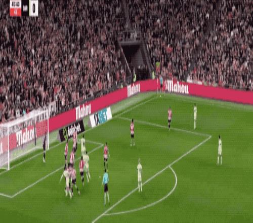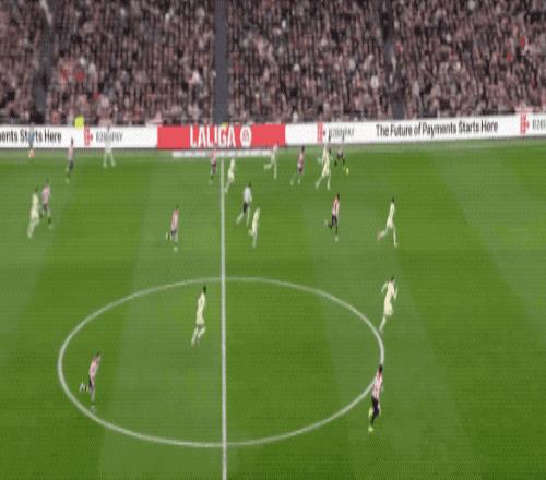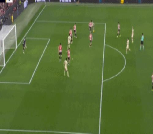 易邊再戰后,雙方都進行了人員調整。佩德里替補登場,提升巴薩中場的組織能力,而畢爾巴鄂也換上桑切特加強進攻。僅僅開打2分鐘,拉什福德左路內切后嘗試一腳弧線球遠射,烏奈·西蒙飛身將球撲出。
