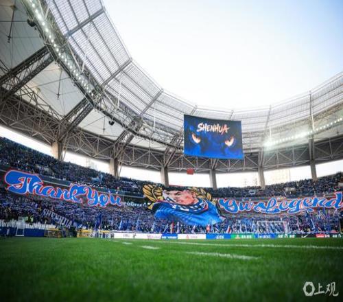 賽前,上海體育場看臺展出巨型TIFO,向不久前退役的老將于漢超致敬,場面感人。