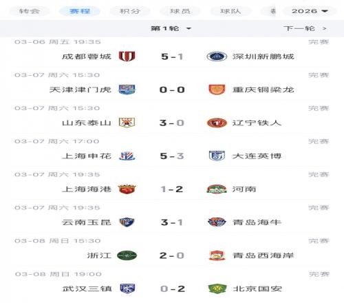 這些球隊中,山東泰山、上海申花、北京國安、河南隊和浙江隊在新賽季的首輪取勝獲得3分,他們分別戰勝遼寧鐵人、大連英博、武漢三鎮、上海海港和青島西海岸。