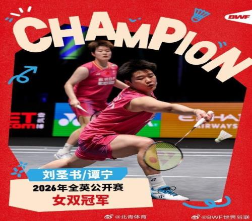 羽毛球全英公開賽女雙決賽,譚寧/劉圣書2比0戰勝李紹希/白荷娜,奪得冠軍。比分:21比18、21比12。