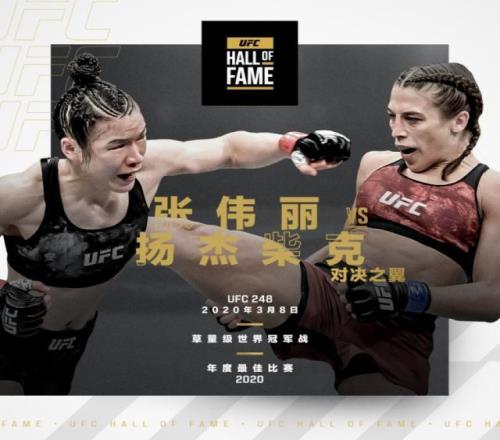 UFC官宣,張偉麗vs喬安娜(UFC 248)入選2026年UFC名人堂“對決之翼”,成為UFC歷史上首場入選名人堂的女子比賽。這場比賽兩人激戰五回合,共打出351次有效擊打,創下UFC女子賽事單場紀錄、冠軍戰歷史第三高。最終張偉麗分歧判定獲勝衛冕,該戰被公認為八角籠最偉大比賽之一。名人堂儀式將于今年夏季舉辦。