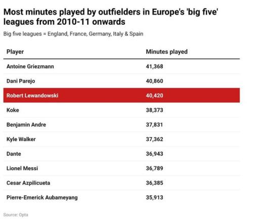 自2010年夏天他加盟多特蒙德以來,在歐洲五大聯(lián)賽中,只有兩名球員的出場時間比他更多:馬德里競技前鋒安托萬-格里茲曼和瓦倫西亞中場丹尼-帕雷霍。