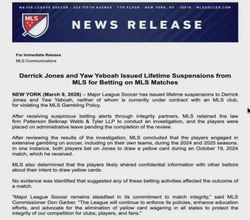 然而,美職聯的官方公告如同一記重錘:終身禁賽。