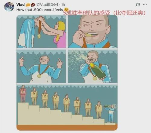 當時所有人都覺得泰倫盧在說大話,沒想到快船說到做到。剩余18場常規賽,快船只要拿到9勝9負,就能保持五成勝率??齑蛎栽谠u論區表示:“拿到五成勝率的感覺,比奪冠還爽!”西部第八和第九有啥區別?反正都得打附加賽……