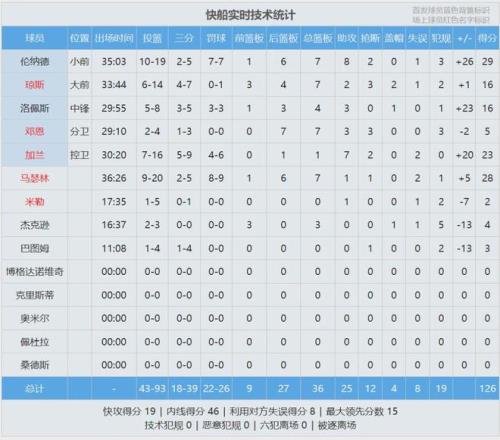 快船新援馬瑟林和加蘭都有不錯的表現:馬瑟林替補出戰36分鐘,投籃20中9,三分5中2,罰球9中8,得到28分7籃板,正負值+5。加蘭首發出戰30分鐘,投籃16中7,三分9中5、罰球6中4,拿到23分7助攻2搶斷,正負值+20。