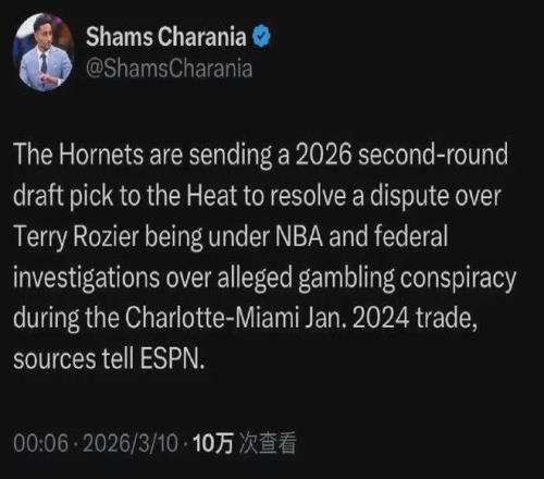 爆料王Shams:黃蜂送出一個26年次輪簽補償給熱火,以此解決24年交易出現的糾紛。