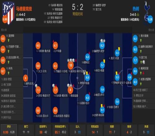 上半場,熱刺二號門將金斯基連續2次送大禮后被1號門將維卡里奧換下,阿爾瓦雷斯助攻略倫特推射打破場上僵局,隨后格列茲曼、阿爾瓦雷斯、勒諾爾芒先后破門擴大比分,波羅扳回一城,半場馬競4-1領先;下半場,格列茲曼助攻阿爾瓦雷斯破門鎖定勝局,波羅助攻索蘭克破門。