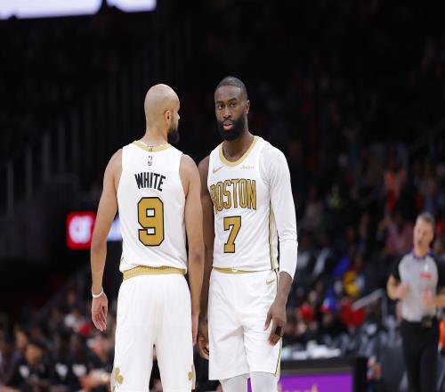 本場比賽,杰倫·布朗次節由于不滿裁判判罰怒噴裁判,連續吃T被直接驅逐出場,離場前他出戰15分鐘,8中4拿到8分2籃板7助攻1搶斷,出現2失誤,正負值+1。