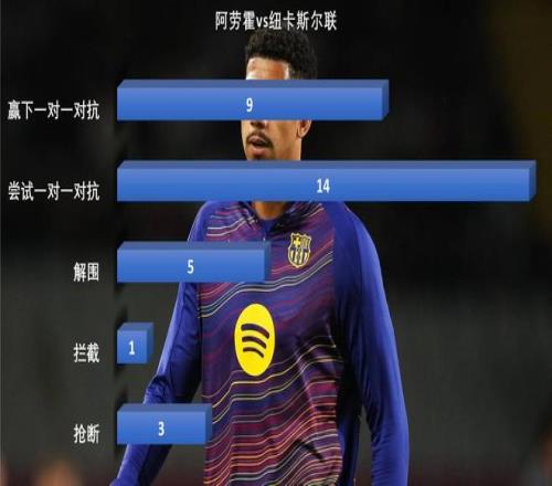 阿勞霍本場比賽嘗試了14次一對一對抗,贏下了其中的9次,貢獻了3次搶斷5次解圍和1次攔截。弗里克要求阿勞霍前頂到非常高的位置,這樣一來庫巴西可以利用自己的球商和空間意識,完成更好的選位。
