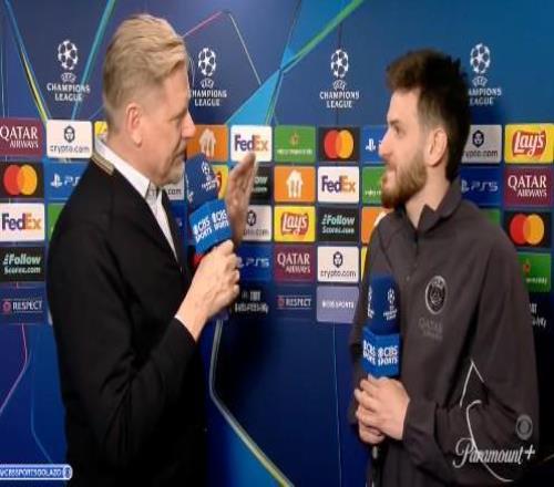 歐冠1/8決賽首回合,巴黎主場5-2戰勝切爾西,本場比賽上演2球1助的克瓦拉茨赫利亞接受了CBS體育的賽后采訪。