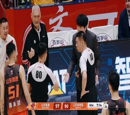 次節再戰,陶漢林很快領到了第三次犯規,并且江蘇男籃將優勢穩定在兩位數。龐崢麟、蔣浩然狀態出色,克里斯與亨特產生肢體沖突,裁判及時介入給出技術犯規平息。邱彪指導叫出暫停,隨后不斷強攻內線,陳林堅連得四分,直接抹平分差!半場比賽結束,山東男籃完成14分的逆轉,反超6分!