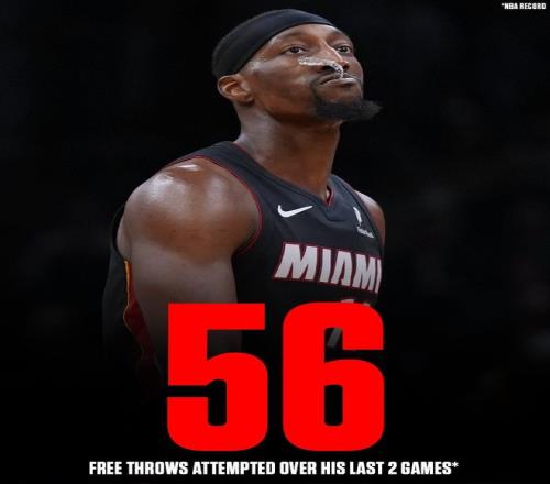 阿德巴約最后連罰12球,過去2場比賽罰球合計56罰,刷新了小喬丹創下的54罰紀錄。