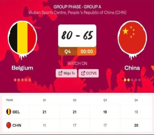 武漢世界杯資格賽上,中國女籃65:80不敵比利時隊。