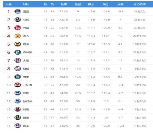 今日比賽后火箭、湖人排名互換,其他西部球隊排名不變。