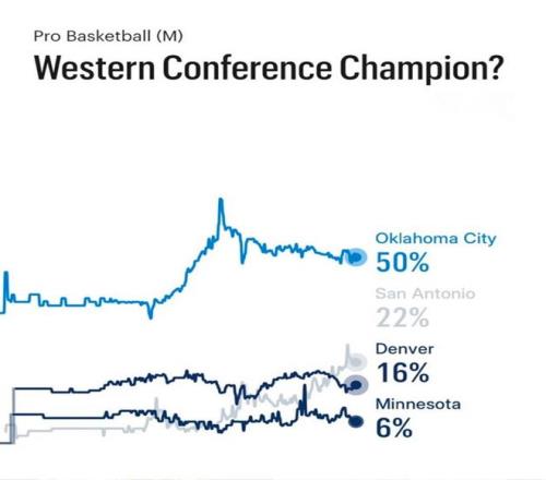 最新西部冠軍概率出爐!快船逆勢而上獲3%概率成大黑馬,火箭5%屈居第5,榜首50%斷檔領先。