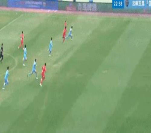 第30分鐘,張宸梁后場傳球失誤,河南隊斷球反擊,姆布拉突入禁區斜射破門,1比0!