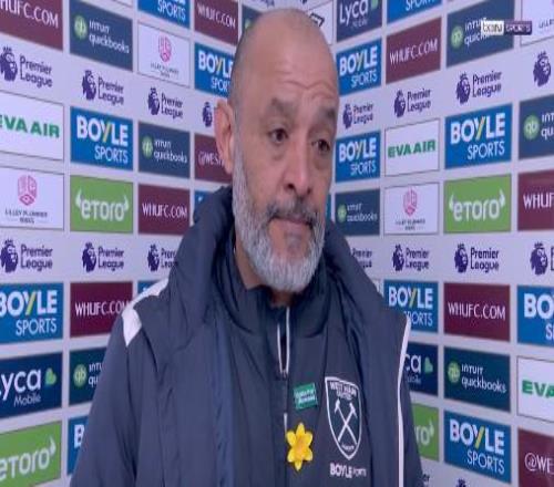英超第30輪,西漢姆聯主場1-1戰平曼城,西漢姆聯主帥努諾賽后接受了拜因體育的采訪。