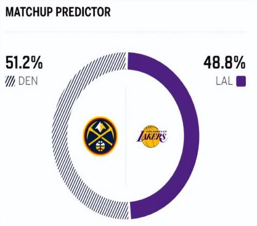 賽前,美媒ESPN對本場比賽進行了勝率預測,湖人隊勝率48.8% ,掘金勝率則為51.2% ,算是半斤八兩 。