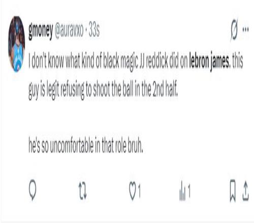 湖蜜:我不知道雷迪克是怎么設置的戰術,他不讓詹姆斯在下半場投籃了,詹姆斯在下半場有機會都不投,詹姆斯在這個角色中太不自在了。
