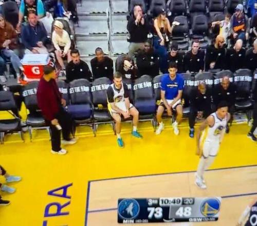 僅剩受傷觀戰的庫里、斯潘塞、萊昂斯三個人……
